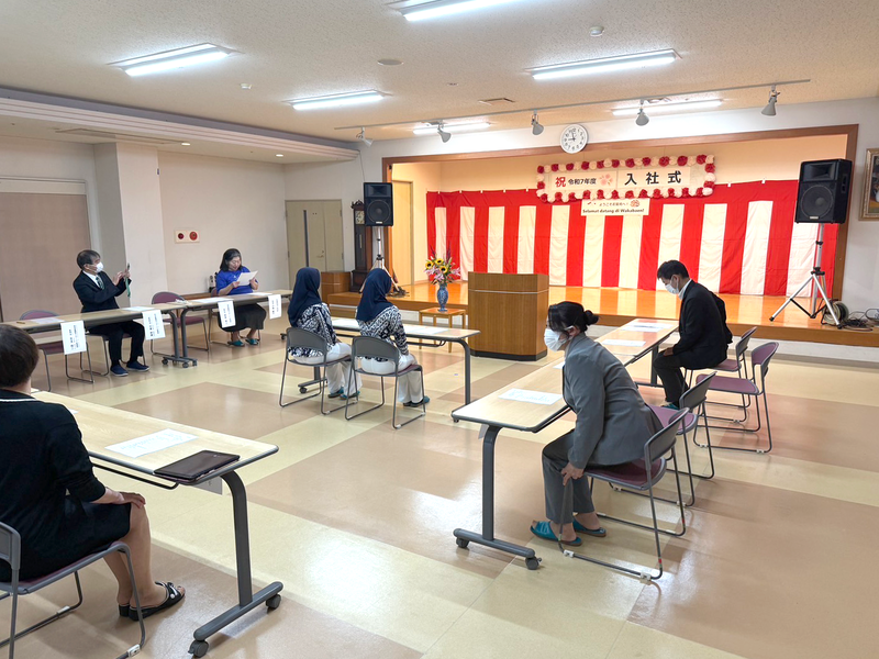 今回の入社式は、技能実習生にとって日本での第一歩を踏み出す大切な節目となりました。これからは業務を通じて、2人が介護の現場で力を発揮し、大きく成長していく姿を期待しています。私たちも引き続き企業様と連携し、技能実習生が安心して挑戦できる環境を整えてまいります。